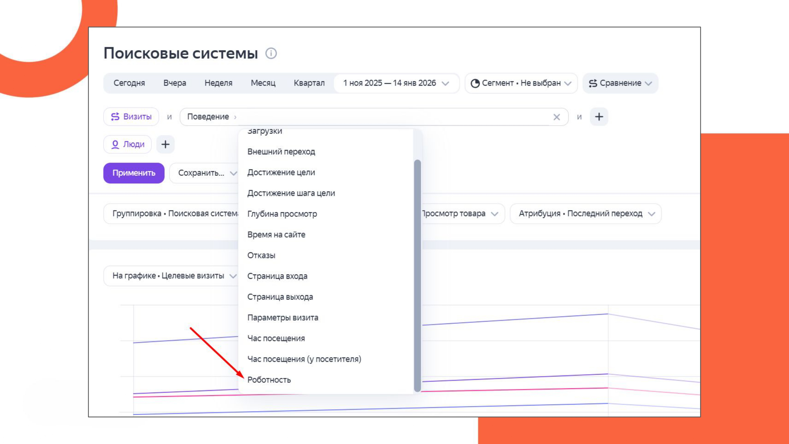1. Фильтр «роботность» убрали из быстрого доступа. Теперь эту настройку можно найти только в разделе «Поведение», что делает доступ к ней менее очевидным и требует дополнительных действий при анализе данных.