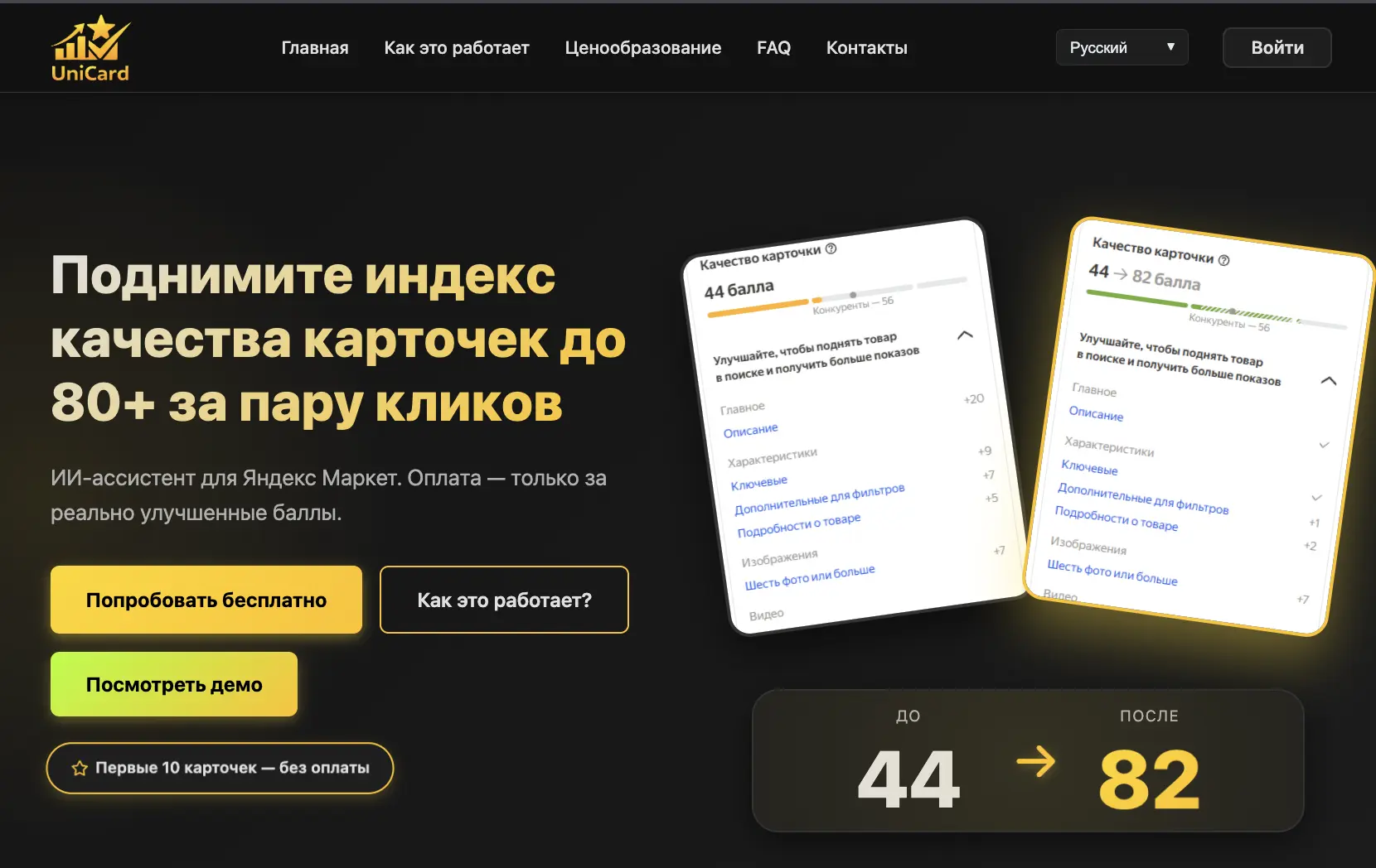 Увеличь продажи на маркетплейсах с Card.uniseller.io — мощный сервис для оформления и оптимизации карточек товара.