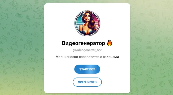 Telegram-основан, с акцентом на видеогенерацию и глубокое обучение. Нет цен, но есть монеты для премиум. Анонимность через мессенджер, файлы удаляются после.