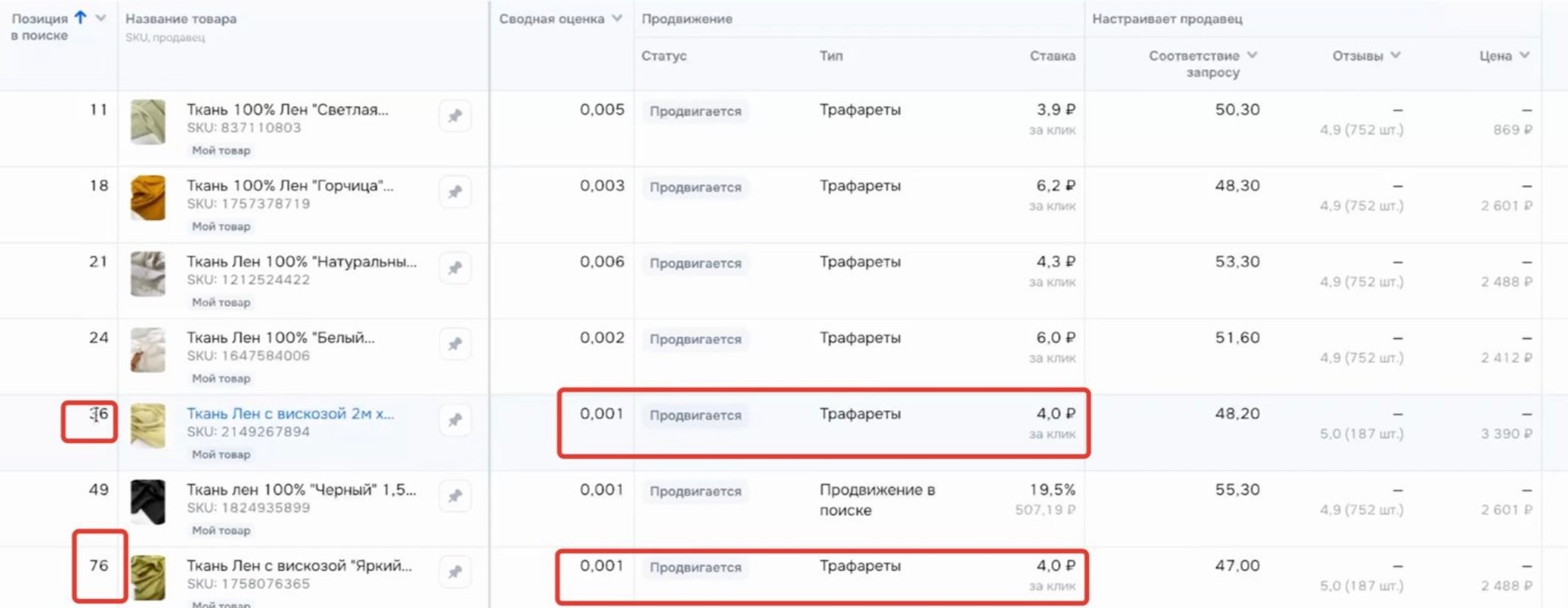 По той же причине вы можете видеть карточки конкурентов, которые обгоняют вас в выдаче, несмотря на то, что у них ставка меньше. Из-за кликабельности.
