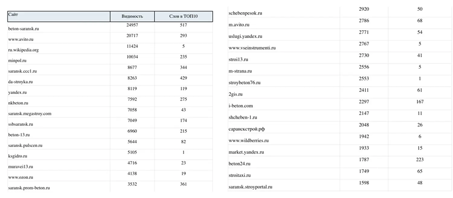 - вывести запросы "бетон Саранск", "купить бетон", "бетон цена" и похожие в топ 10 Яндекса и укрепить позиции