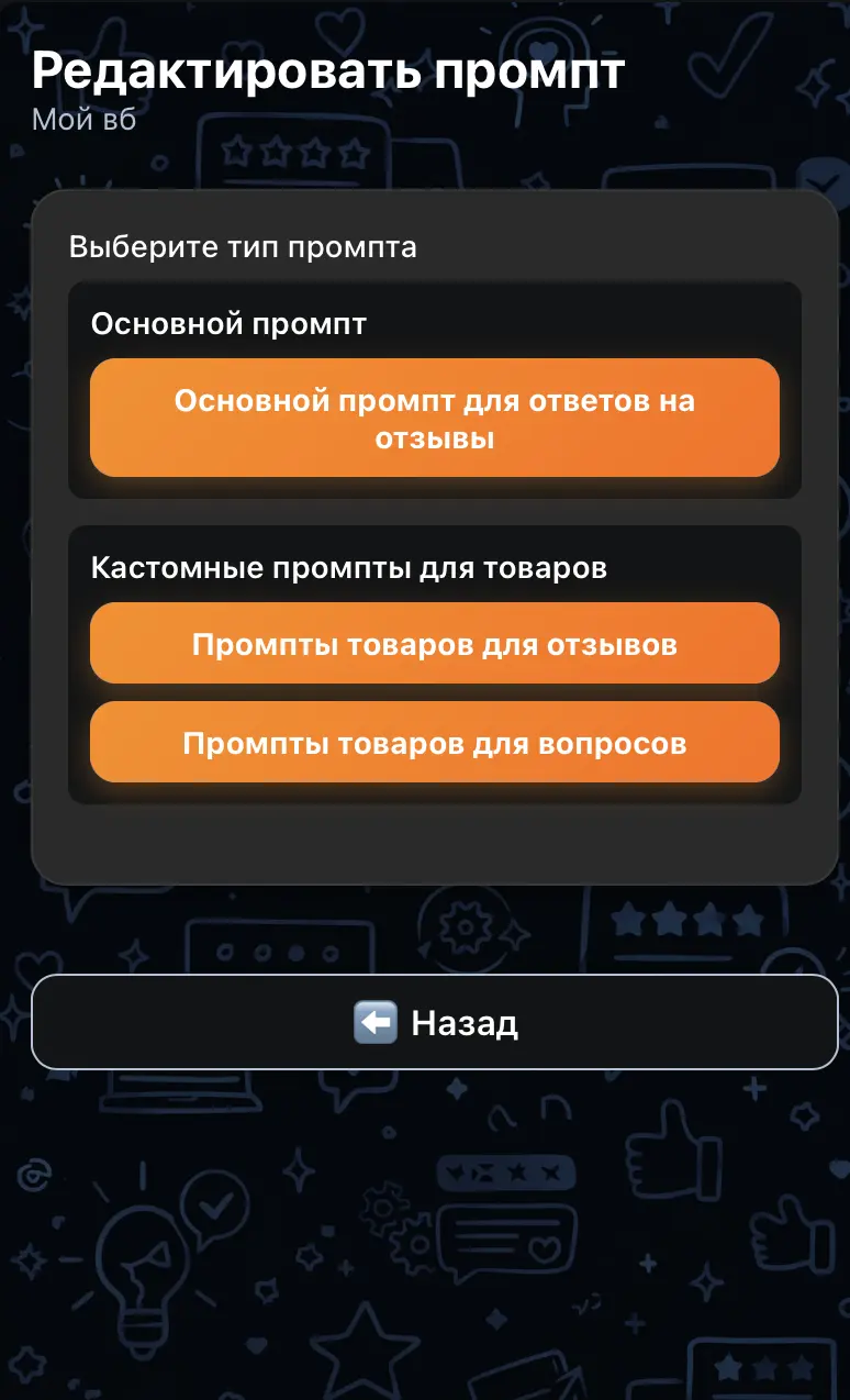 WB-ответ (Telegram-бот) — это не просто Telegram-бот, а полноценный инструмент автоматизации коммуникации с покупателями на маркетплейсах.Он закрывает одну из самых трудоёмких зон в работе продавца — ответы на отзывы и вопросы — и делает этот процесс быстрым, управляемым и предсказуемым.
