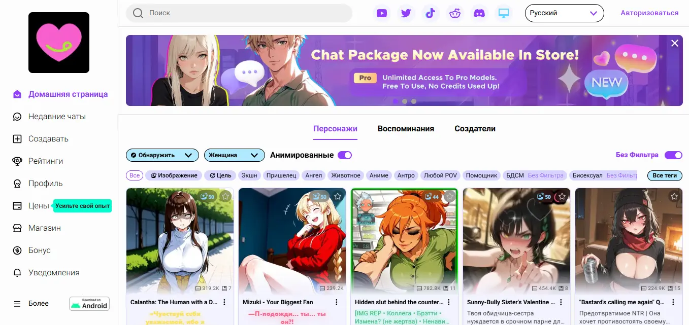 - колоссальное разнообразие девушек ИИ и сценариев общения