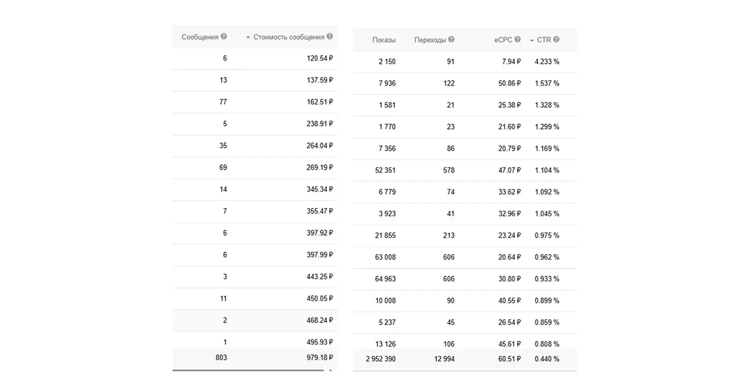 - Наладить ежедневный контроль: расходы, показы, переходы, стоимость клика, обращения.