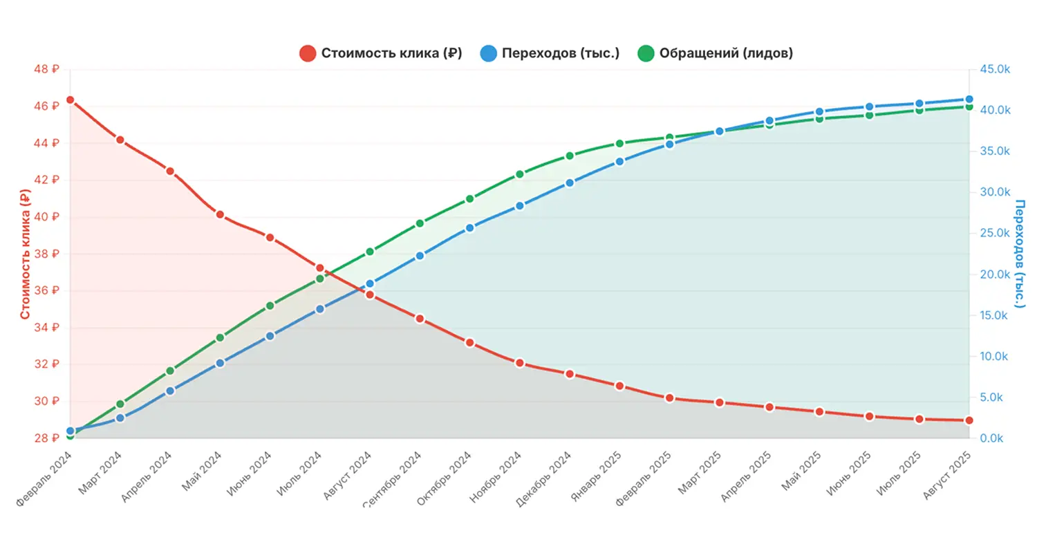 Ключевое достижение: Многократное увеличение объёма качественного трафика при снижении стоимости привлечения клиента