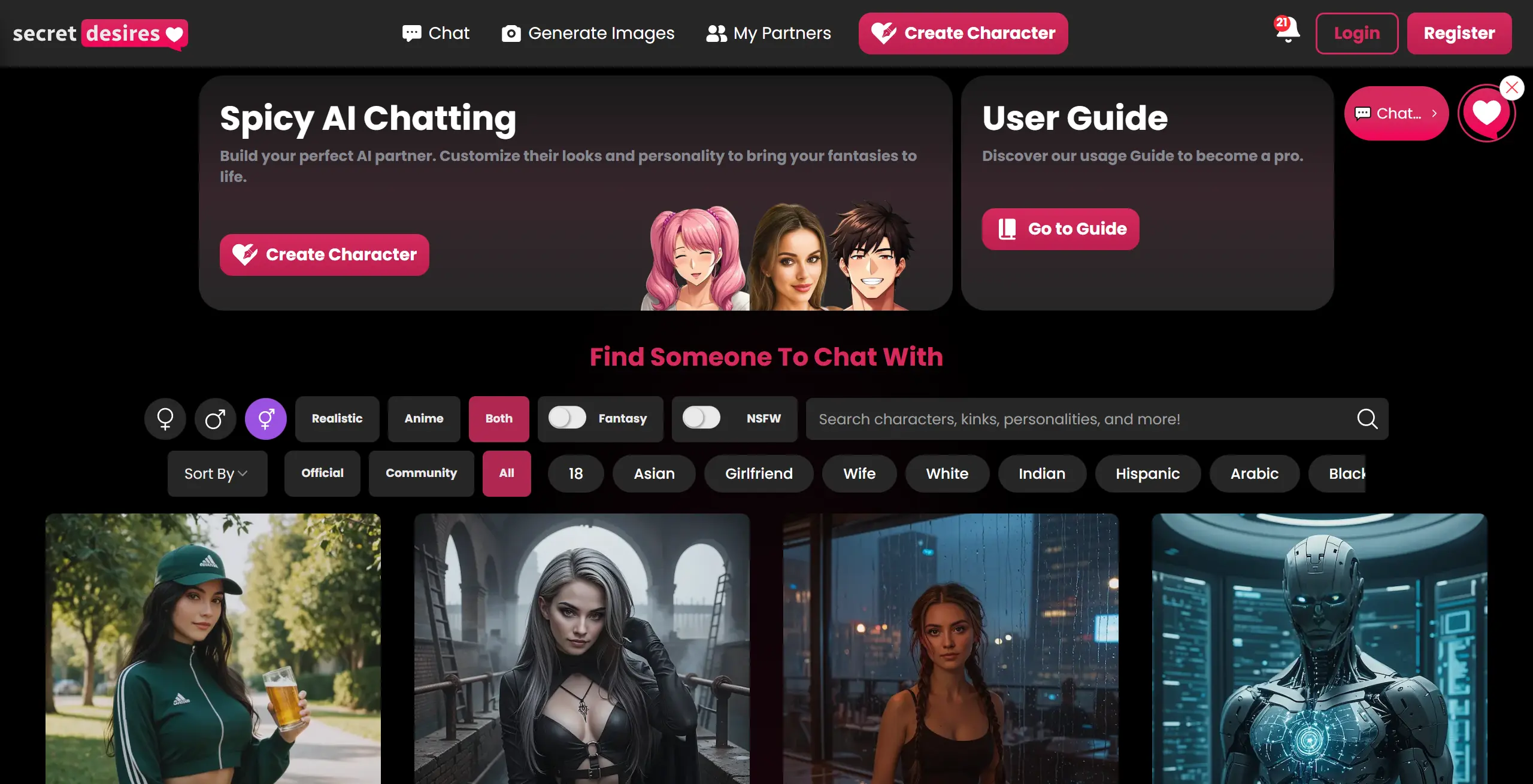 - Secret Desires AI. Каталог виртуальных девушек и женщин с акцентом на интимные текстовые чаты онлайн и продвинутую персонализацию. Хороший вариант, если важны ролевые переписки с девушкой, конфиденциальное общение для взрослых и гибкие настройки границ откровенности.