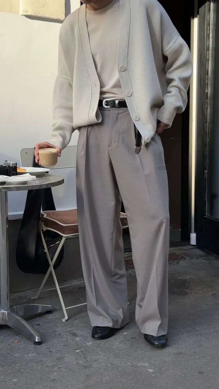 Это сочетание подчеркнуто формальных брюк (например, из шерсти Super 150’s со стрелками) с расслабленным верхом. Актуально носить такие брюки с качественными худи из плотного хлопка или оверсайз-футболками, заправленными только спереди. Поверх можно накинуть структурированное пальто или куртку-харрингтон.
