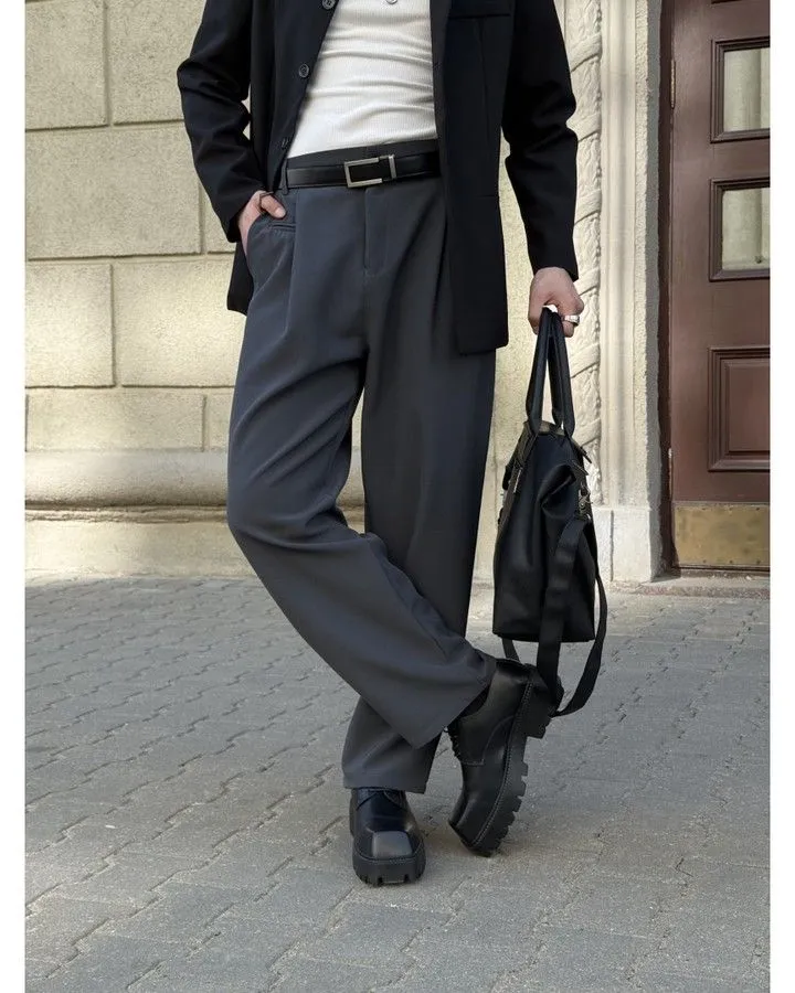 - Высокая посадка: пояс находится на естественной линии талии (на уровне пупка или чуть выше). Это золотой стандарт, так как высокая посадка визуально удлиняет ноги и создает непрерывную вертикальную линию, когда мужчина носит пиджак.