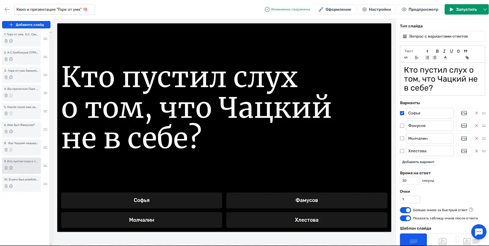 Особенности образовательного квиза: