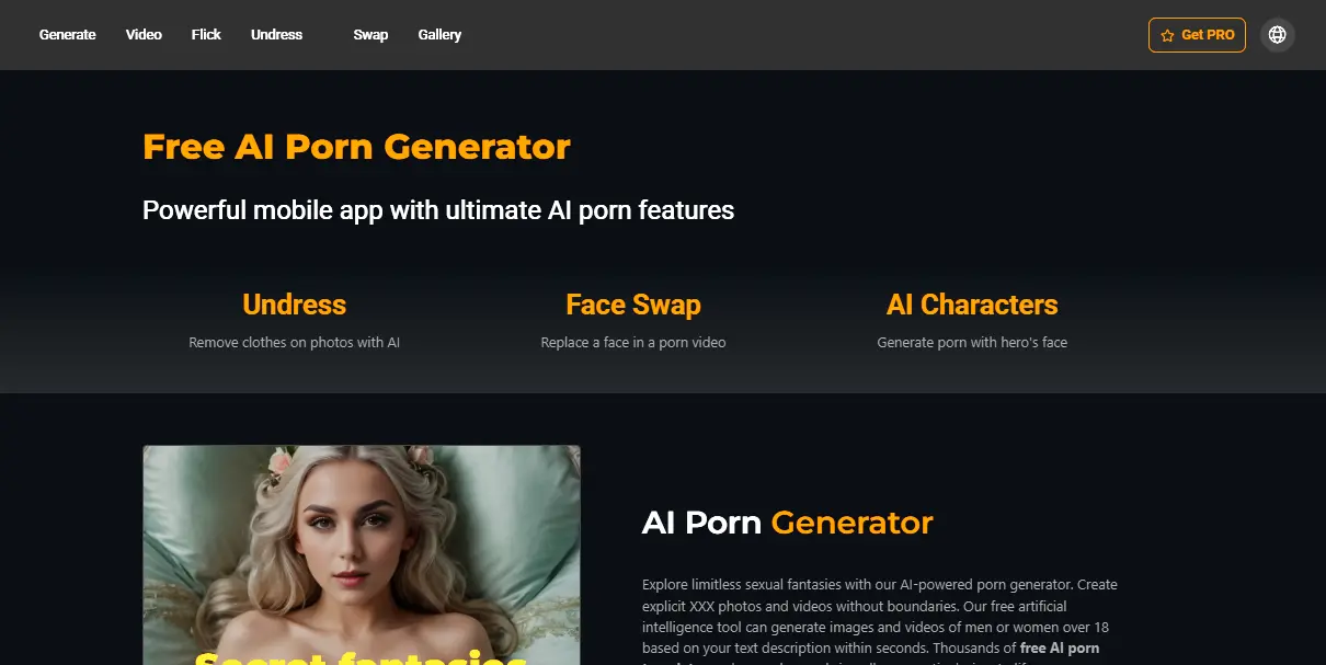 Один из лидеров по качеству реалистичных изображений. Использует продвинутые модели глубокого обучения, отлично понимает сложные промпты. Поддерживает негативные указания, что помогает избегать нежелательных элементов. Высокое разрешение файлов, хорошая проработка деталей тела и освещения. Бесплатный режим позволяет тестировать, премиум открывает безлимит. Лучший выбор для тех, кто ищет максимальный реализм в генераторе порно и готов тратить время на точную настройку запросов.
