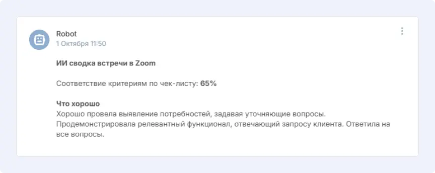 Но такой подход не давал полной картины. Часть встреч оставалась без анализа, а значит — без обратной связи и точек роста.