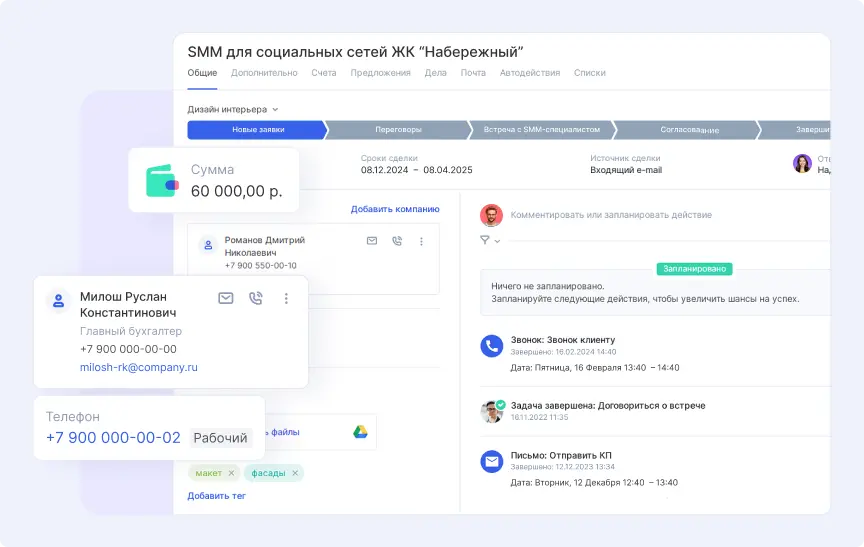 Компания планирует масштабировать направление услуг. Ожидается рост количества сделок. Следующий шаг — интеграции телефонии, мессенджеров и email.