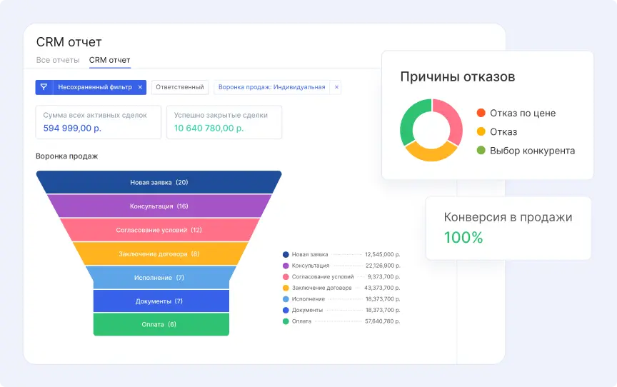 Это позволит собирать лиды в одном окне. Заявки будут автоматически превращаться в сделки, а нагрузка на сотрудников снизится.