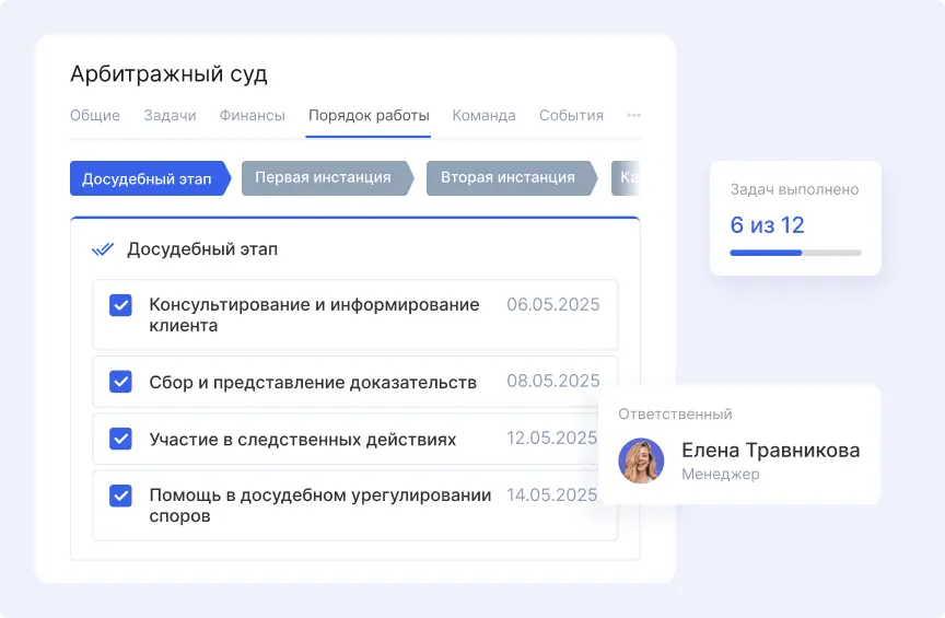 При этом в работе одновременно может находиться до 30 дел. Каждое из них требует контроля сроков, переписки с клиентами, распределения задач, подготовки документов. Операционная нагрузка растет и начинает забирать время, которое должно уходить на юридическую экспертизу.