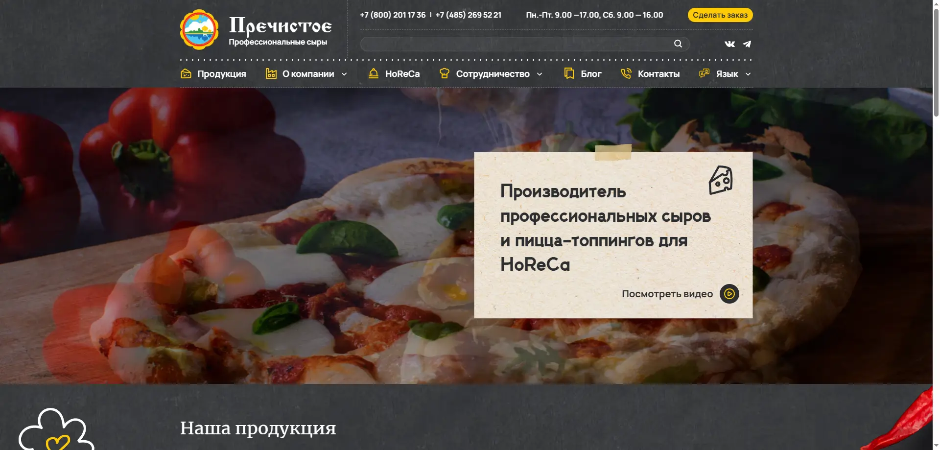 - Ассортимент: широта линейки белково-жировых продуктов для пиццы