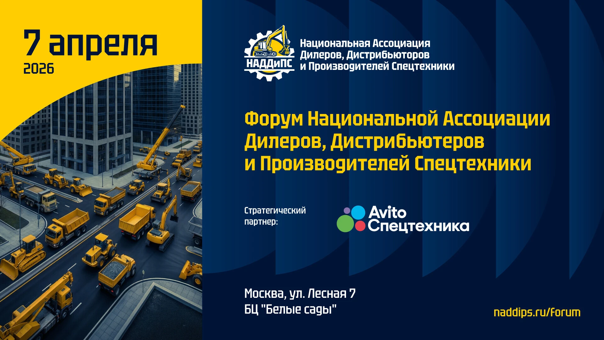 7 апреля в Москве состоится ФОРУМ НАЦИОНАЛЬНОЙ АССОЦИАЦИИ ДИЛЕРОВ, ДИСТРИБЬЮТЕРОВ И ПРОИЗВОДИТЕЛЕЙ СПЕЦТЕХНИКИ (НАДДиПС).