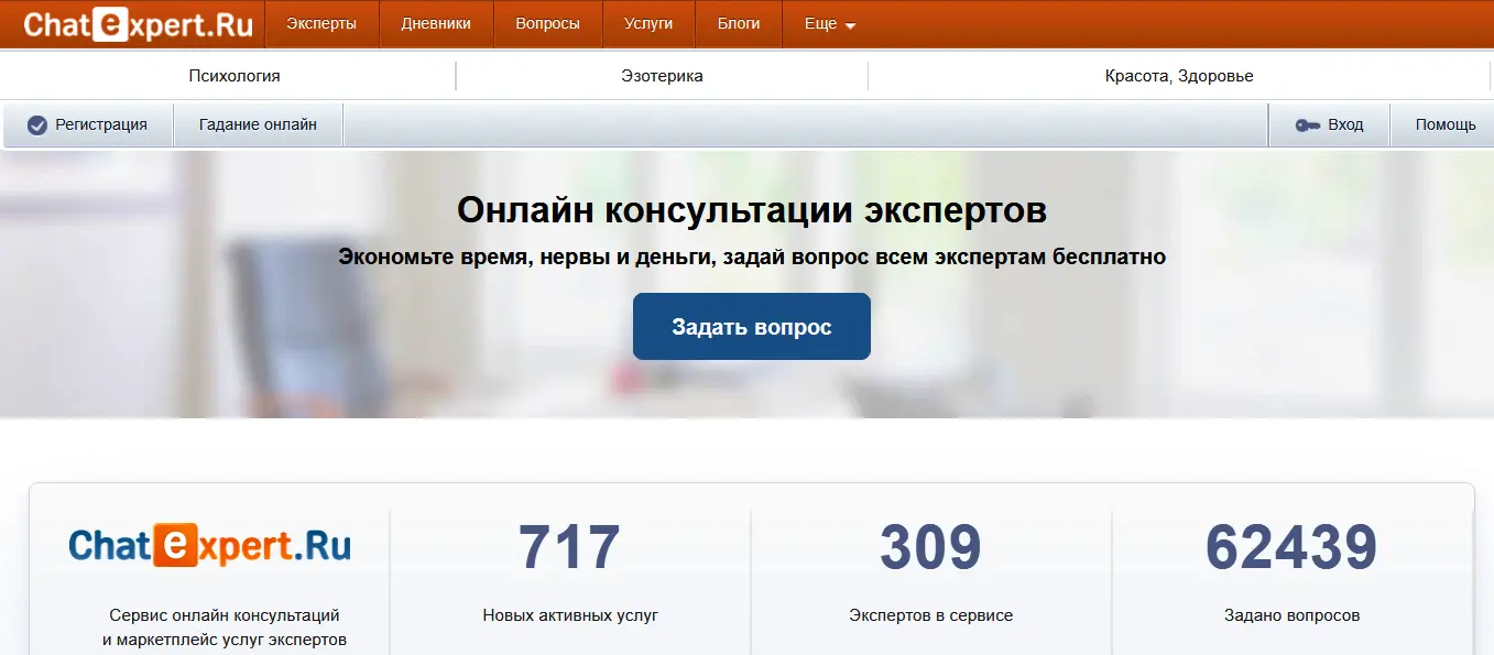 - Chatexpert — универсальный маркетплейс эзотериков с мощным фильтром рейтинга астрологов, гарантия возврата, три бесплатных вопроса, астрокартография и карта путешествий.