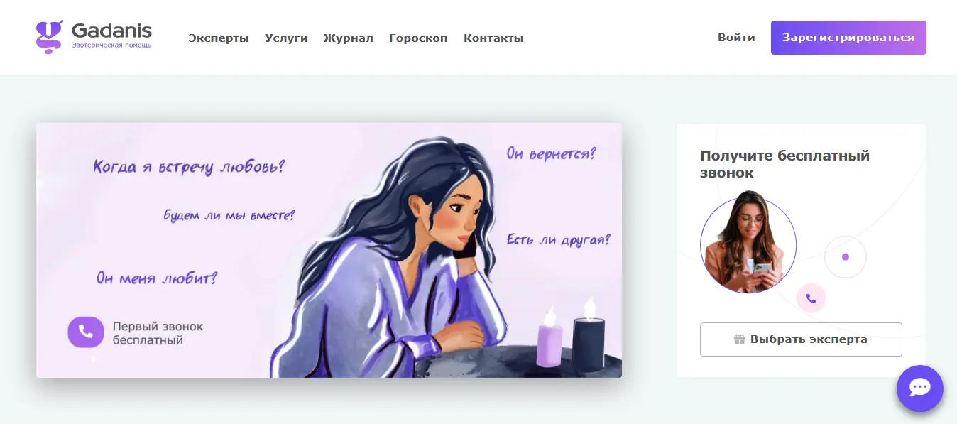 2. Gadanis — расширенные услуги астролога с бесплатным звонком