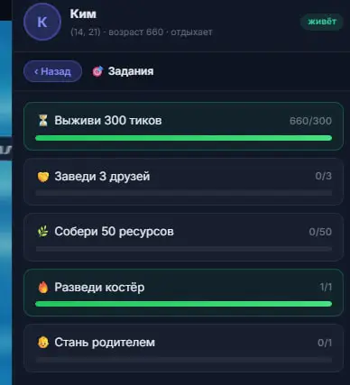 В планах, чтобы Вы как создатель агента, могли давать ему задание (цель), чтобы на этих данных агент, обучался сам ставить себе цели на будущее (Основать свое поселение).