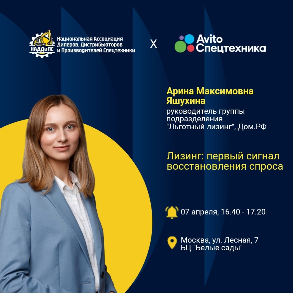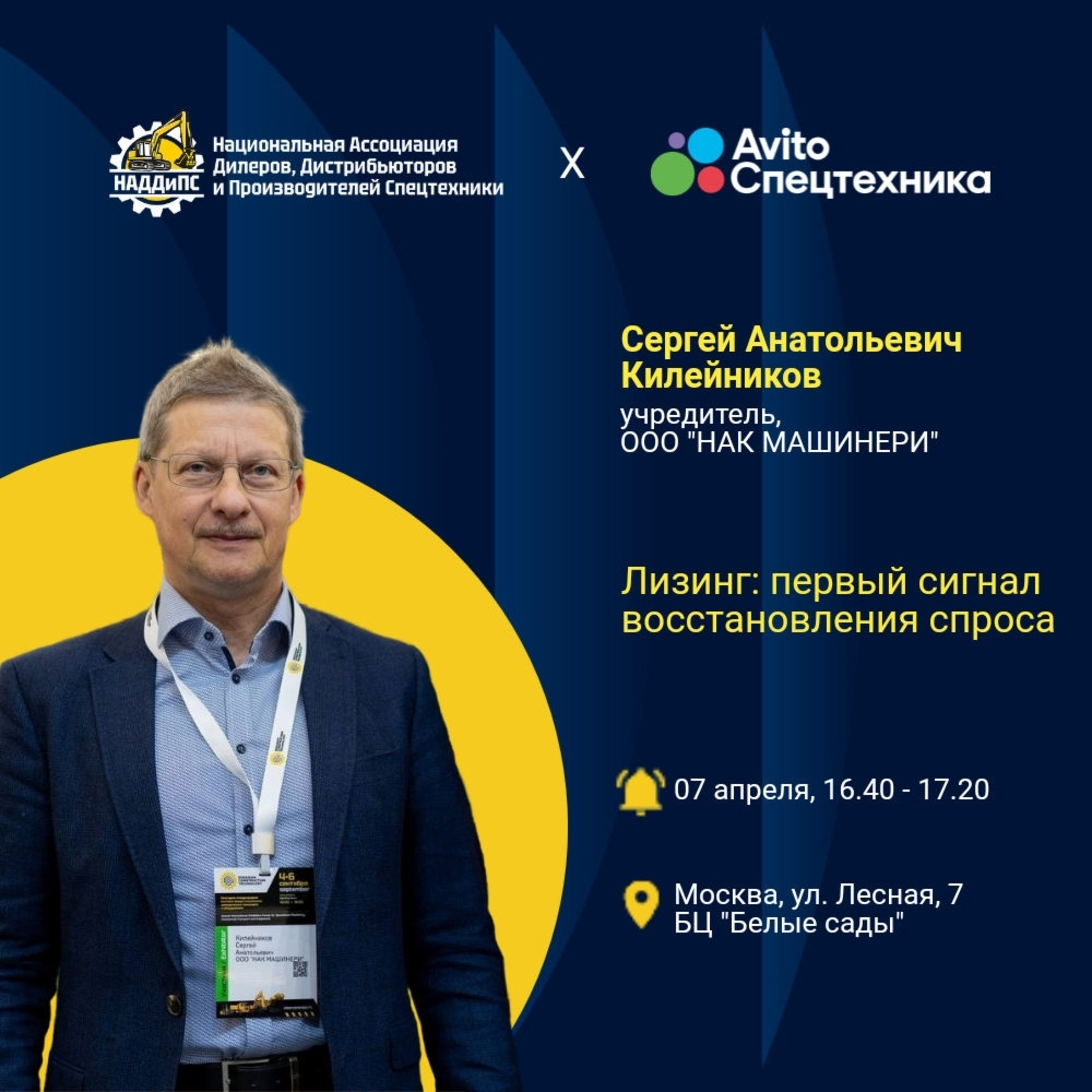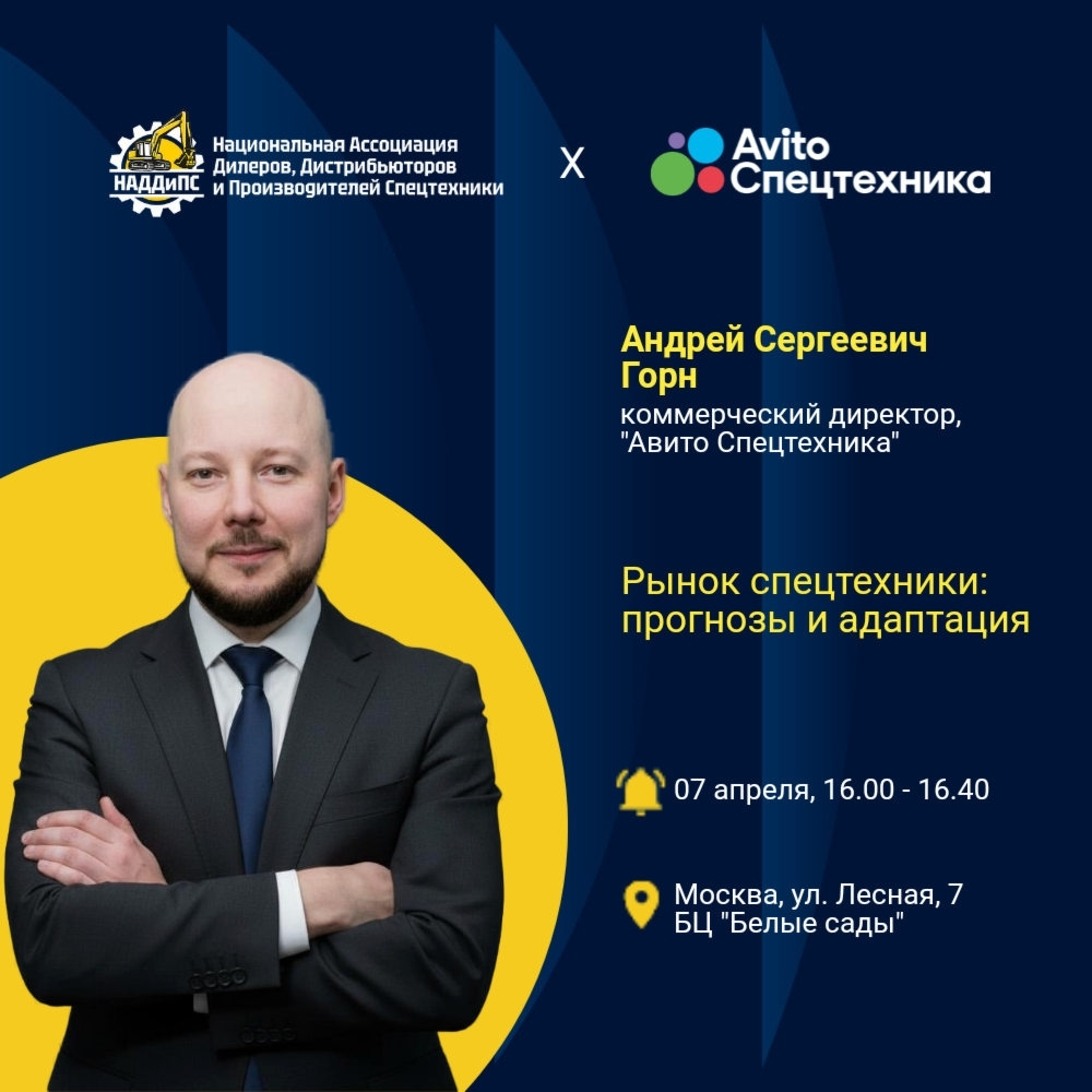 7 апреля в Москве пройдет форум Национальной Ассоциации Дилеров, Дистрибьютеров и Производителей спецтехники (НАДДиПС). Стратегический партнер мероприятия «Авито Спецтехника».