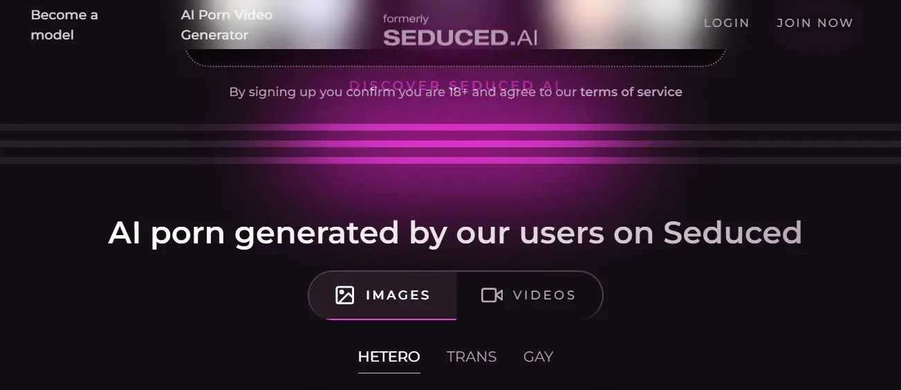 Seduced — контент 18 сделанный нейросетью специализируется на соблазнительных позах и ролевых играх.