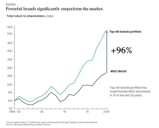 Согласно данным McKinsey, сильные бренды за 20 лет принесли акционерам в 2 раза больше дохода, чем средние показатели индекса MSCI World.