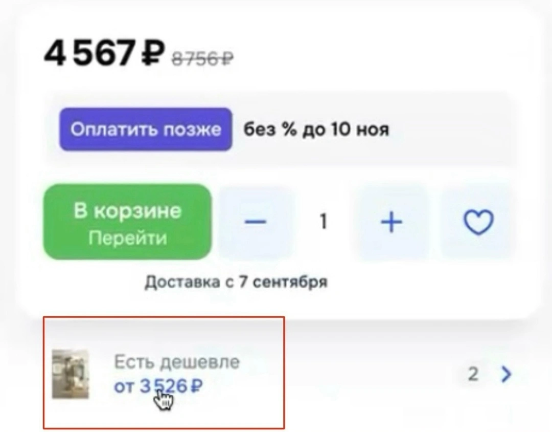 И тогда в карточке вашего товара вместо плашки «У других продавцов» может появиться плашка «Есть дешевле». А цена всегда манит покупателя.