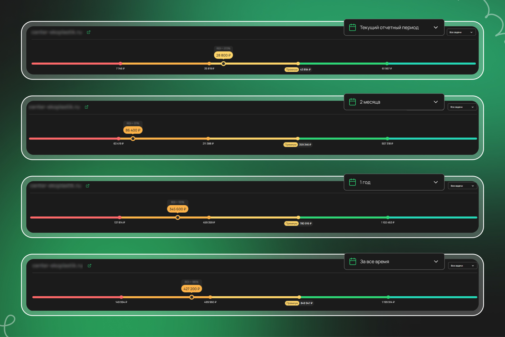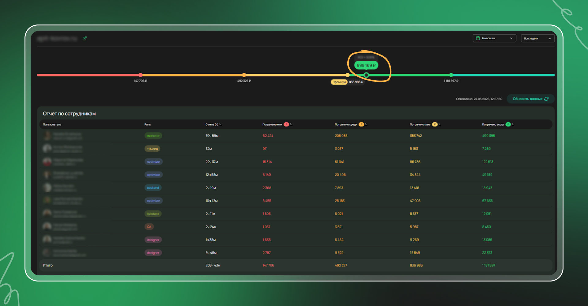 В таких ситуациях особенно важно смотреть не только на один короткий период, а на проект в динамике. Например, за последние шесть месяцев может казаться, что по нему есть запас и команда даже не дорабатывает до плановой стоимости. А если открыть тот же проект за всё время сотрудничества, картина окажется другой: раньше по нему уже была переработка, и сейчас этот проект скорее выравнивается на длинной дистанции.