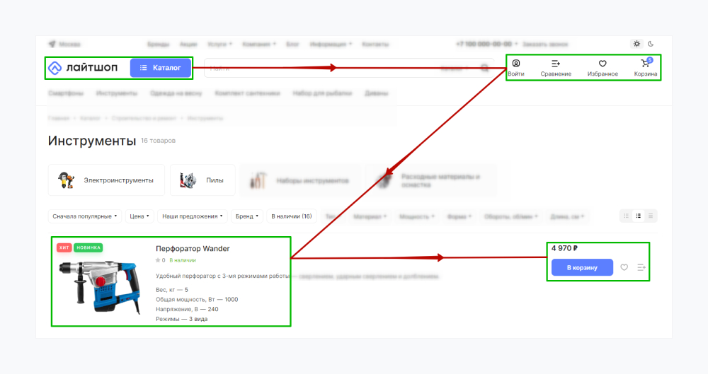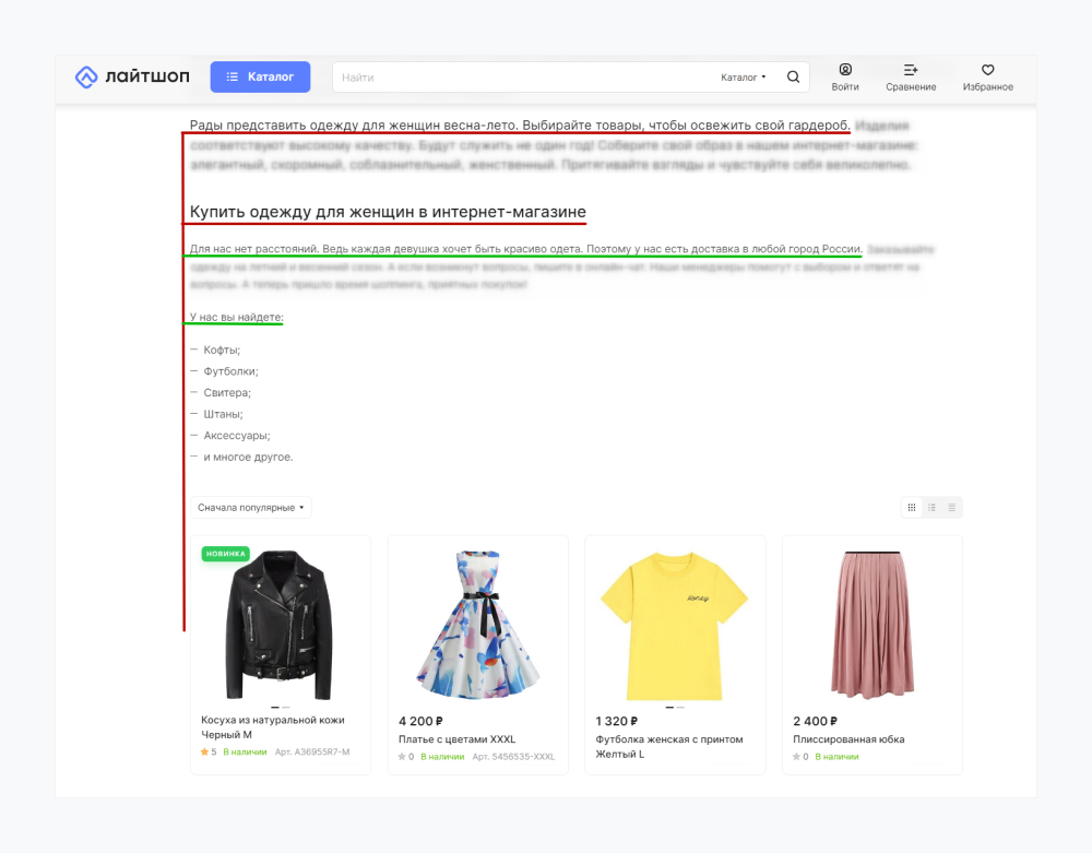 Ознакомьтесь с примерами использования паттернов в наших шаблонах: в разделе товаров, карточке товара и одностраничном лендинге.