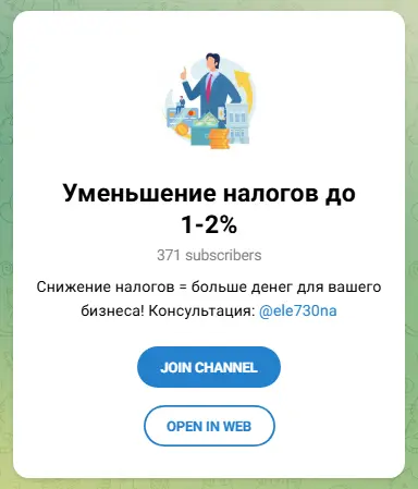 - Уменьшение налогов до 1-2 % — продаёт официальные чеки с НДС и консультирует, как легально списать затраты.