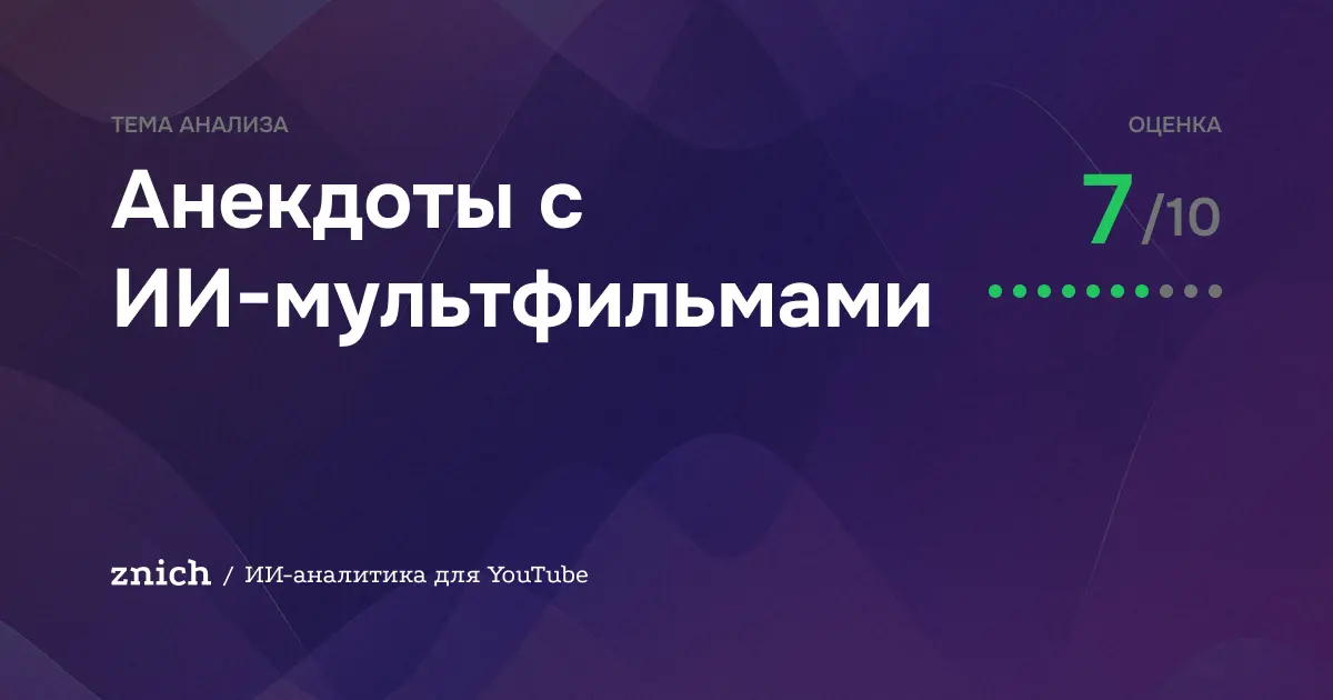 Начинающий автор видит каналы с 60 миллионами просмотров на старых анекдотах и думает: «У меня есть доступ к нейросетям, я просто нагенерирую картинок, озвучу шутку про тёщу и через месяц буду считать миллионы». Кажется, что это «золотая жила» с нулевым порогом входа: контента бесконечно много, а ИИ делает всю грязную работу за тебя. Я прогнал текущие показатели этой ниши через аналитику znich и сейчас объясню, почему за красивыми цифрами доходов скрывается жесткая игра на выживание.