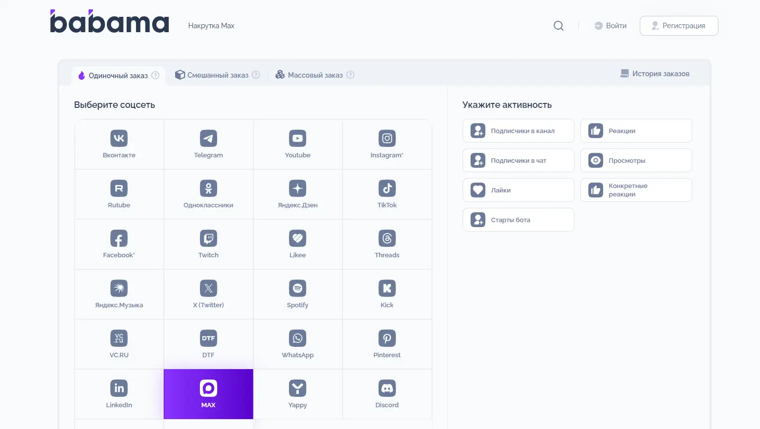 - Babama — надежный сервис для быстрой накрутки голосов в Максе с низкими ценами.