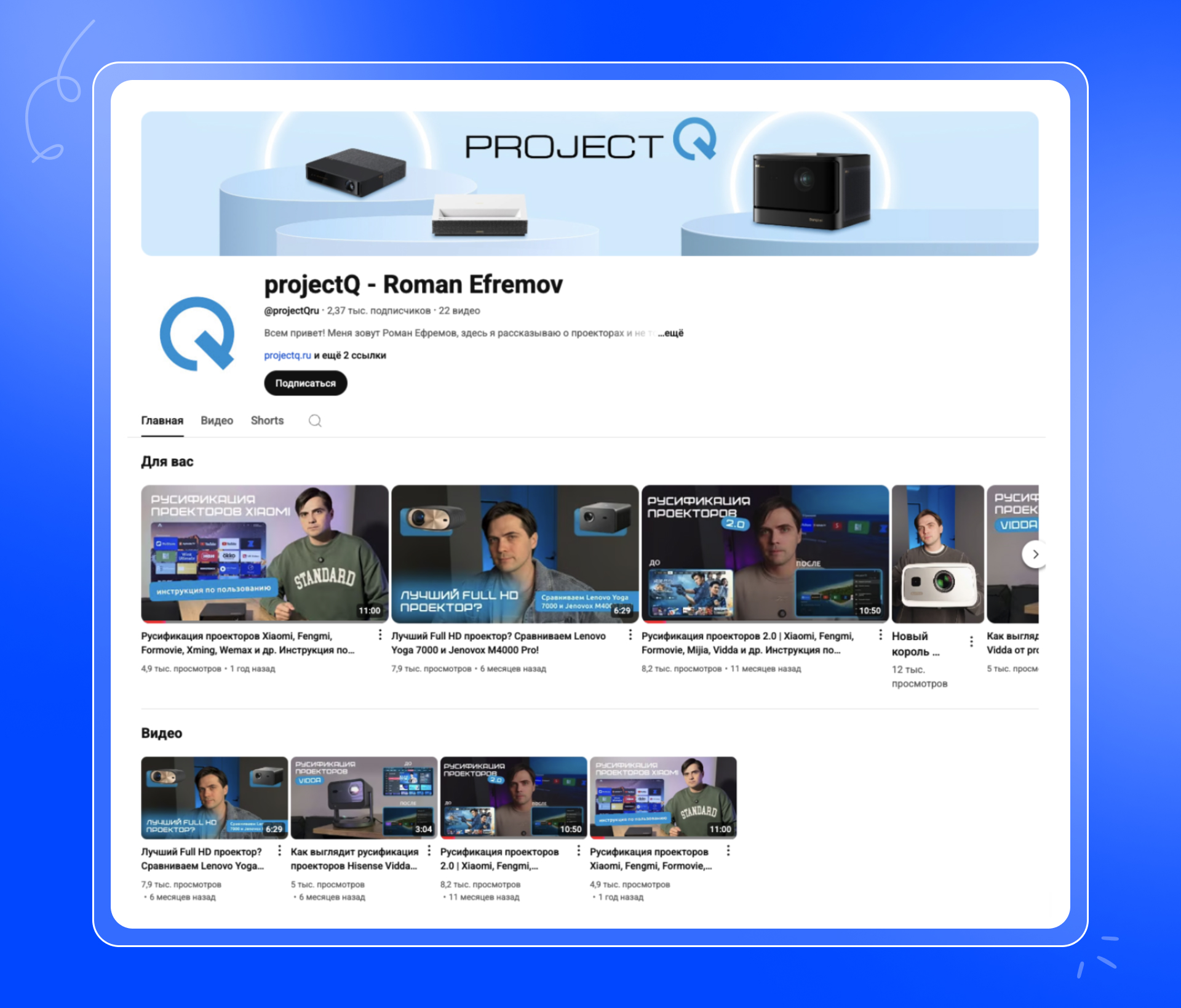 Отдельную роль сыграл видеоконтент. Вместе с клиентом мы приняли решение завести YouTube-канал. Начали создавать контент, который объяснял людям, зачем вообще нужен проектор и как его использовать.