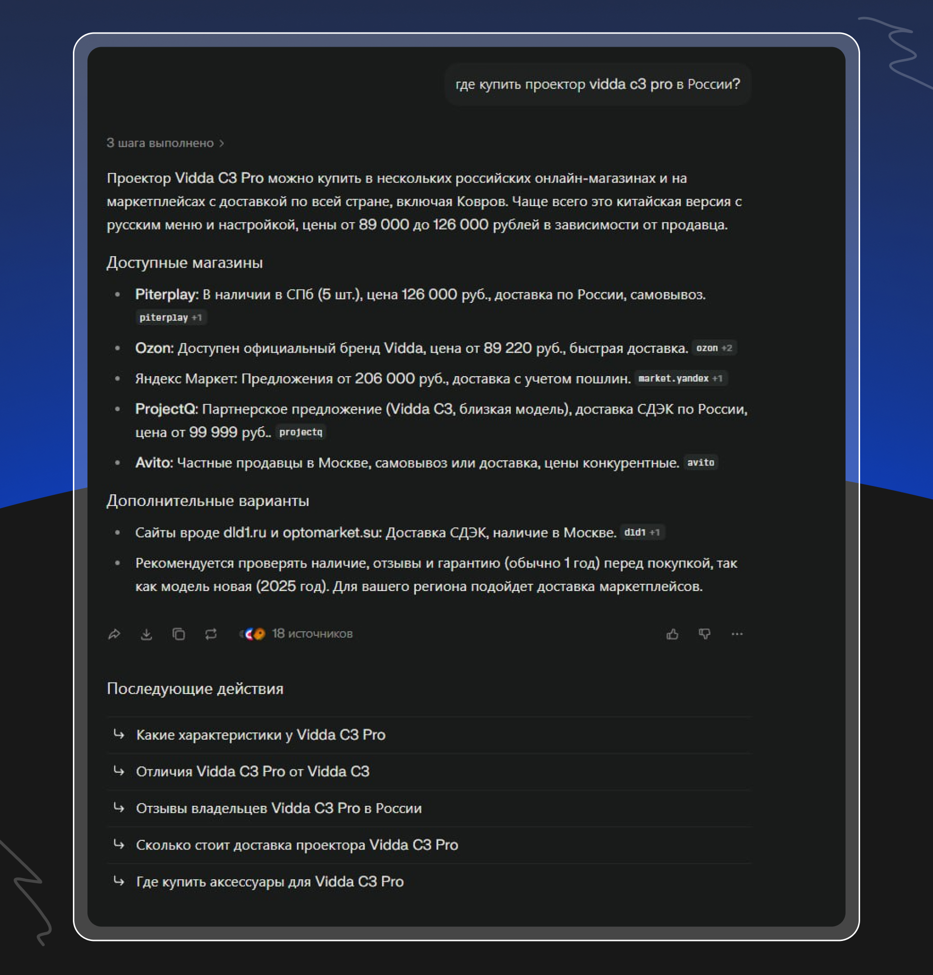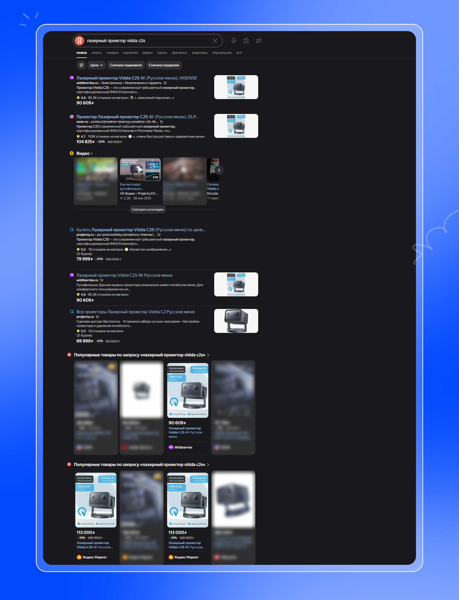 Спрашиваем о покупке популярной модели «где купить проектор vidda c3 pro в России» и в выдаче снова встречаем ссылки на ProjectQ среди других крупных площадок.