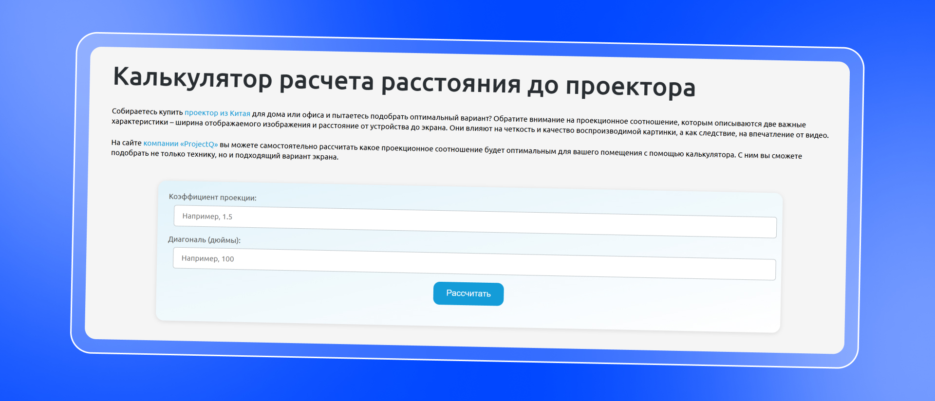 - калькулятор расчёта расстояния до экрана