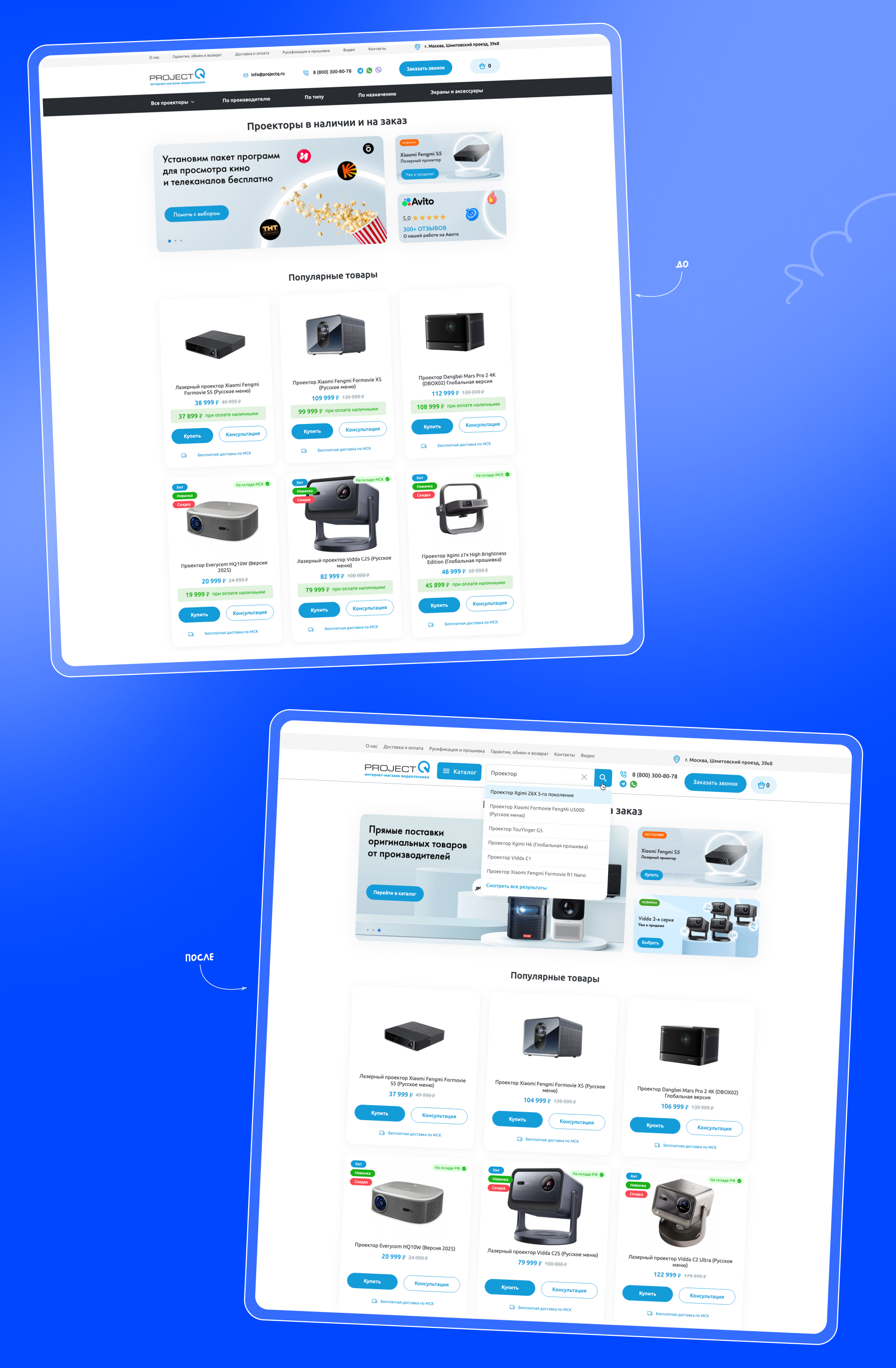 ProjectQ работает на рынке видеотехники с 2015 года и специализируется на проекторах. Мы подключились к проекту больше 4 лет назад. Тогда ниша находилась на этапе формирования спроса: большинство покупателей по-прежнему выбирали телевизоры, а проекторы воспринимали как сложное устройство. Продажи были, но мало и в основном шли через маркетплейсы, Авито. Сайт выполнял роль витрины и почти не участвовал в привлечении клиентов.