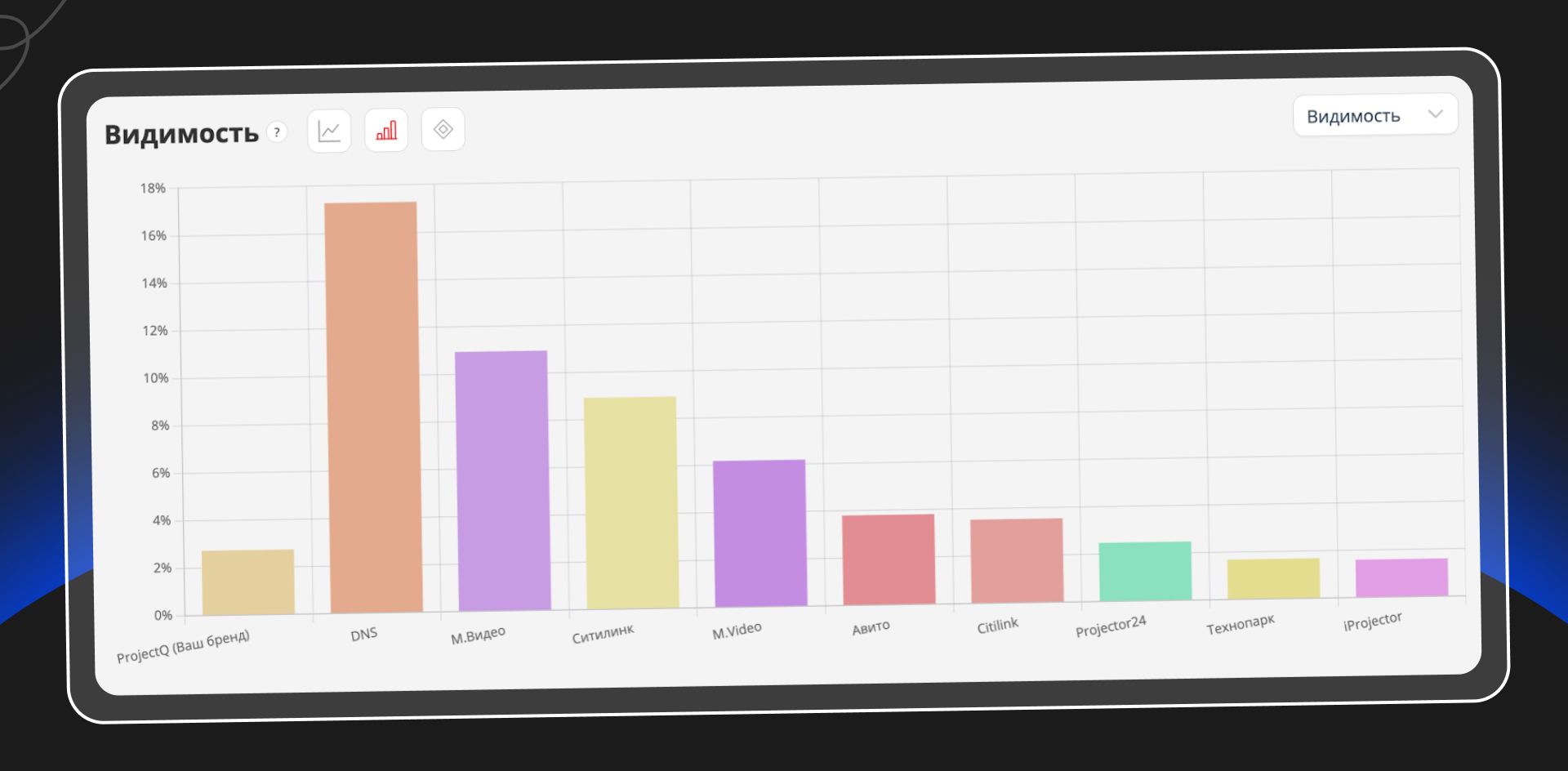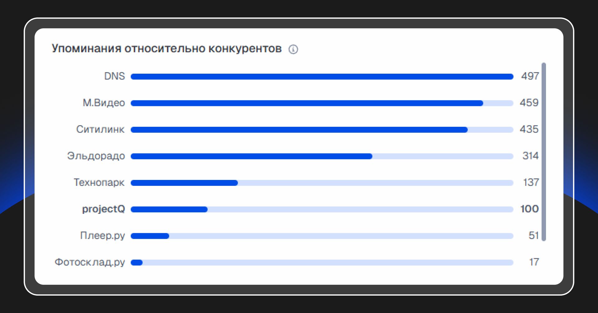 На графике ниже видно, как ProjectQ выглядит на фоне крупных игроков рынка электроники и специализированных магазинов.