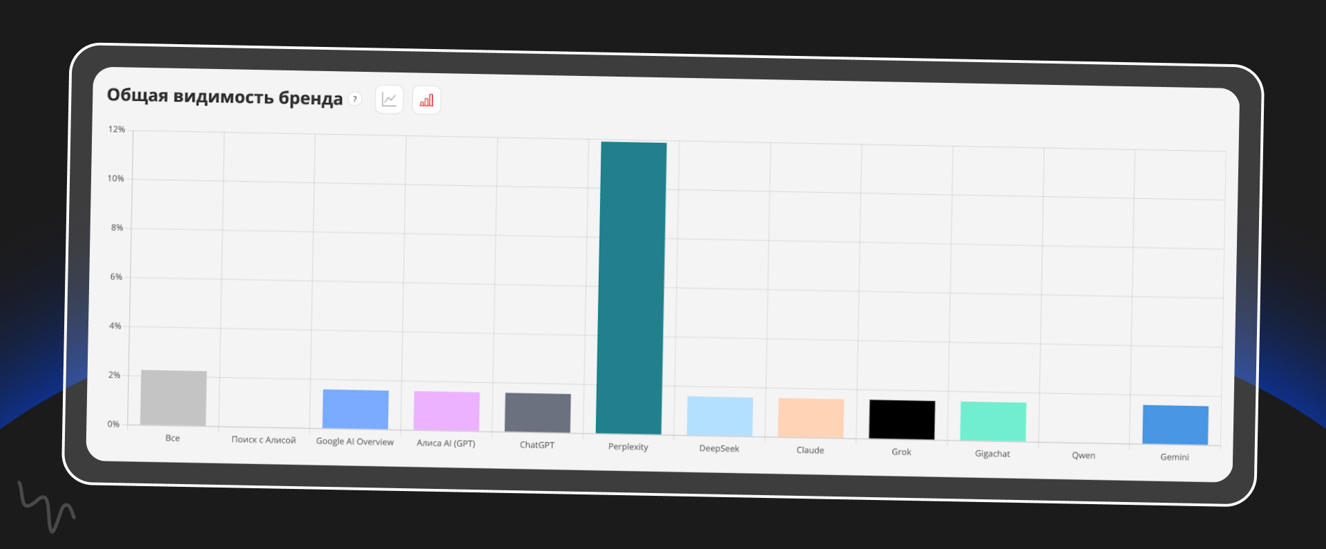 Отдельно мы посмотрели, в каких именно AI-системах встречается ProjectQ. Наибольшая доля упоминаний в нашем наборе запросов пришлась на Perplexity.