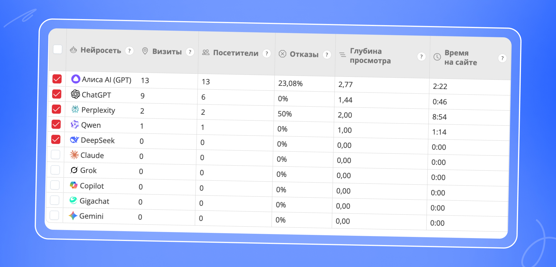 Даже если бренд реально присутствует в нейроответах, это не всегда видно в Метрике и Google Analytics так же прозрачно, как классический поисковый трафик. Часть переходов теряется, часть не маркируется как отдельный AI-источник, а часть влияния вообще проявляется не в клике, а в росте брендового спроса.