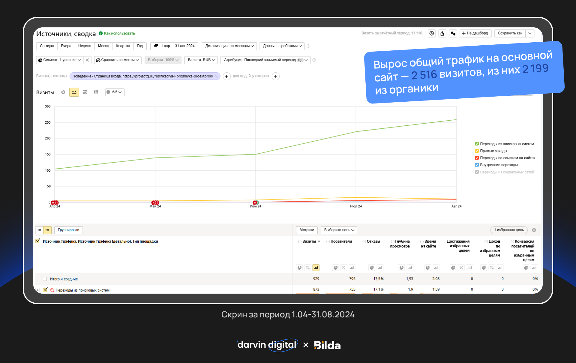 Мы сделали базовые шаги, которые в такой ситуации делает любое агентство: аудит, новый сайт, подключили аналитику, SEO и рекламу.