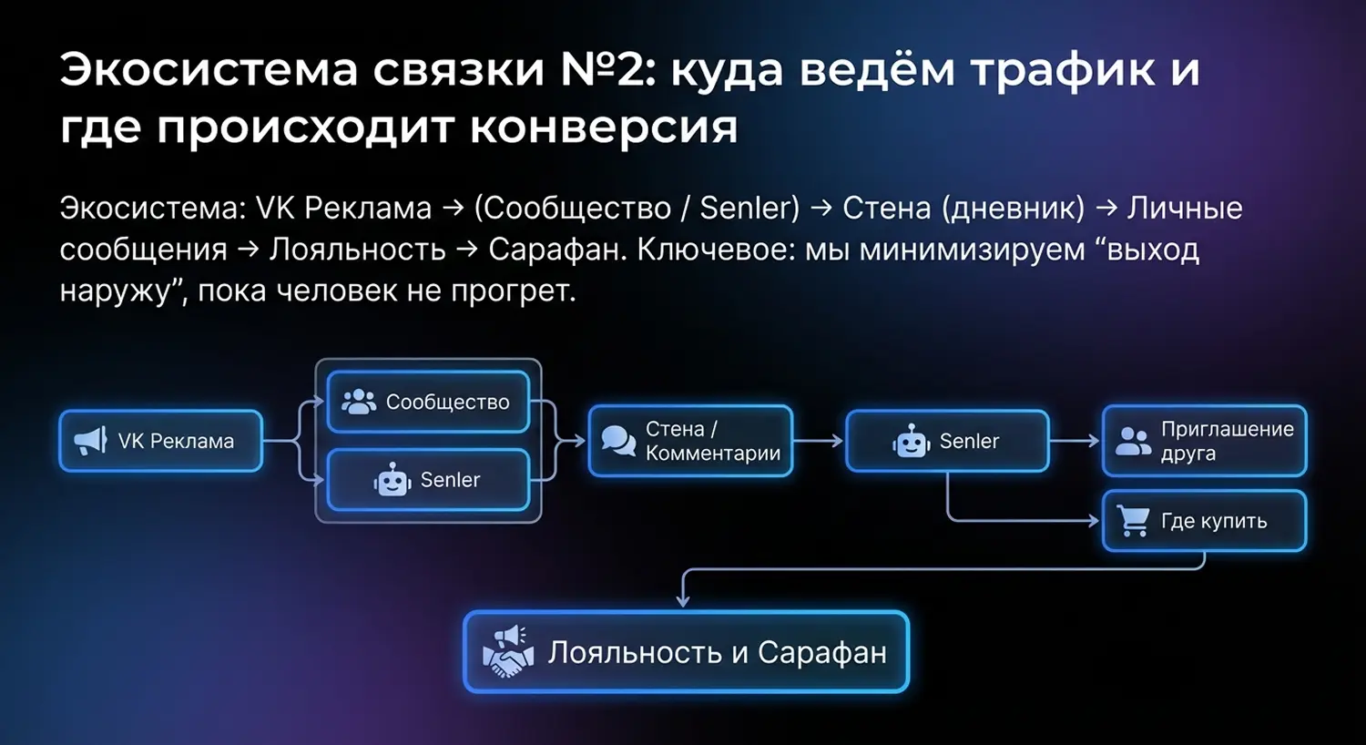 Если стоимость лида в одном канале превысит 500 ₽, предусмотрен механизм мгновенного перевода бюджета в более дешевые ПромоСтраницы или РСЯ.