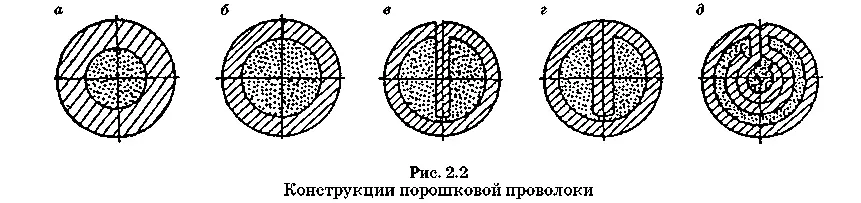 Представляет собой стальную трубку, внутри которой находится порошок (шихта). Шихта может содержать газообразующие, шлакообразующие и легирующие компоненты.