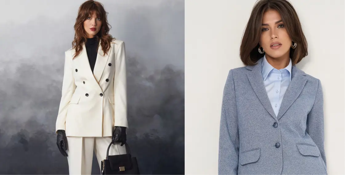 Первое, на что нужно смотреть, это плечи. Zara в рекомендациях по женским костюмам пишет, что жакет должен хорошо сидеть в плечах и застегиваться без натяжения. Это главный ориентир.