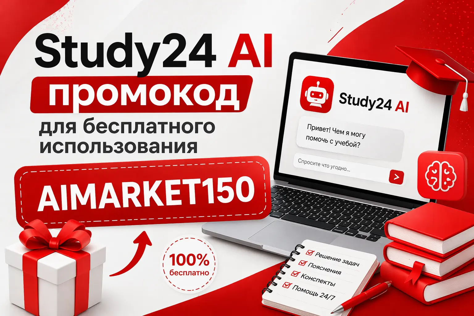 - Код работает только на новых аккаунтах. Если ты уже регистрировался в Study24 AI ранее, бонус не применится.
