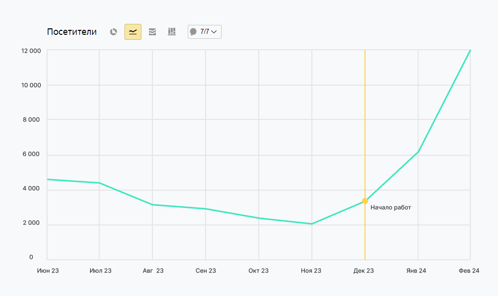 После внедрения изменений сайт начал охватывать больше поисковых запросов. Органический трафик вырос примерно в четыре раза. Рост обеспечила связка: семантика → структура → страницы.