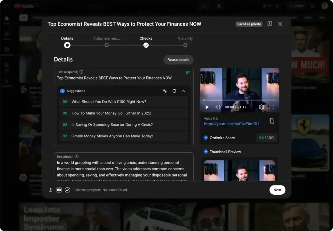 - AI-генерация идей для видео, тегов, анализ обложек.