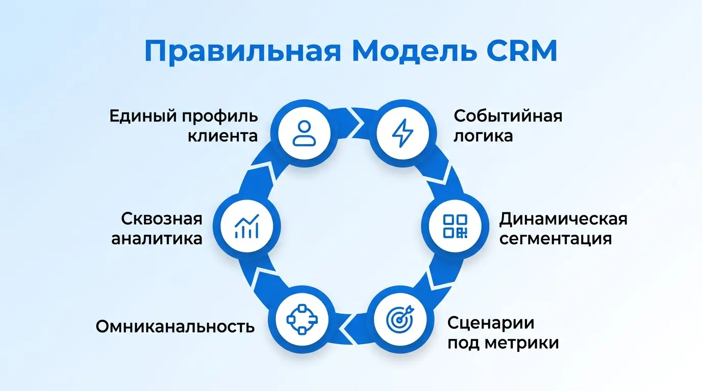 Выигрывают те, кто строит системную логику: единый профиль клиента — событийная архитектура — динамическая сегментация — сценарии под бизнес-метрики — сквозная аналитика. Это не набор функций дорогой платформы, это принцип мышления о клиенте как об активе, которым нужно управлять.