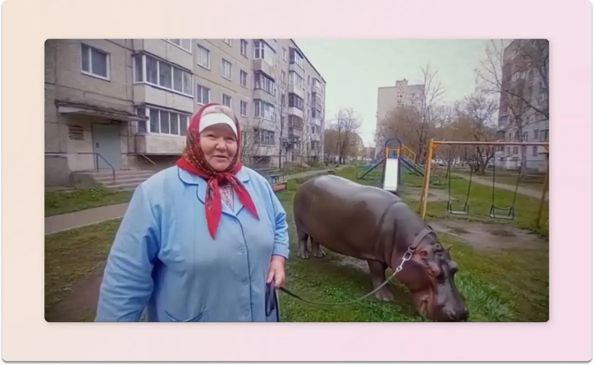 А ещё можно создавать ролики с вымышленными персонажами — сейчас в интернете завирусились гиперреалистичные нейробабушки с ручным бегемотом Булькой на фоне панелек. Это результат работы новой продвинутой нейронки Google Veo 3.