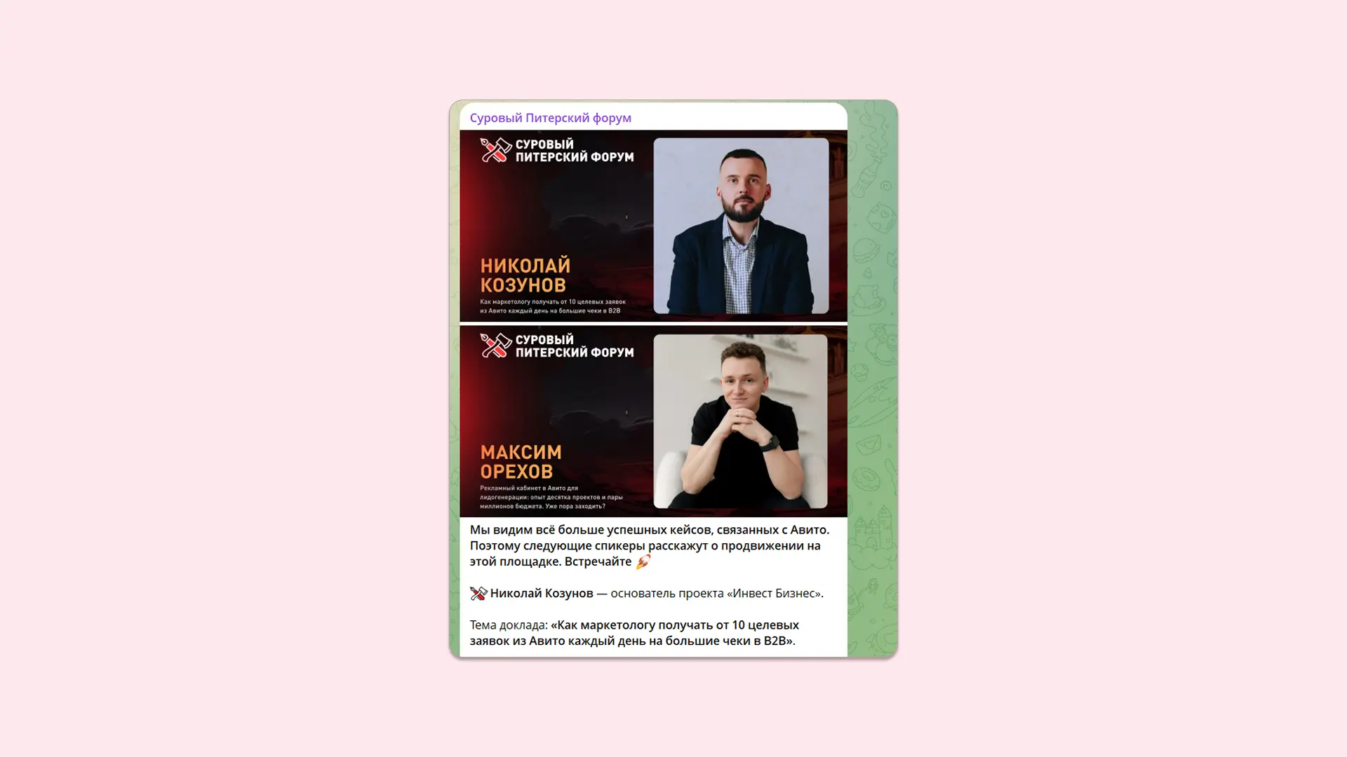 - Отраслевые конференции и форумы — идеальное место для встречи с экспертами и коллегами. Например, «Суровый Питерский форум» ежегодно собирает всех желающих на конференции в сфере интернет-маркетинга. В телеграм-канале можно отслеживать мероприятия: https://t.me/surrrovo