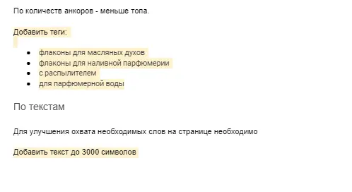 Особое внимание уделялось категориям среднего уровня, которые содержали большие кластеры поисковых запросов. Например, под оптимизацию попали такие разделы как "Флаконы для духов", "Парфюмерные аксессуары", "Декоративные свечи и аромамасла" и пр. Специалисты создавали подробные информационные материалы с SEO-оптимизацией под десятки ключевых фраз.
